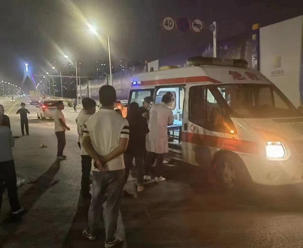 9月1日晚上19:40分左右,咸陽路橋公司高新區(qū)項目部職工發(fā)現(xiàn)一輛轎車和一輛電動車迎面相撞,騎車女子被撞倒在地,同行還有一個一歲左右的孩子。正在加班的職工立馬放下手中工作,奔赴事故現(xiàn)場。